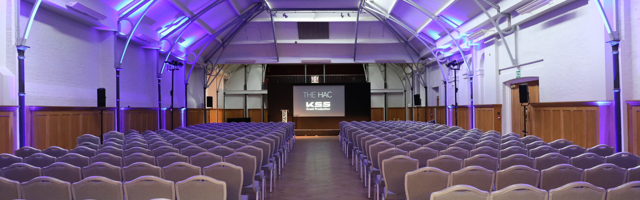 The Prince Consort Rooms rely on flawless technical equipment and professional support to deliver exceptional events. We partner with expert AV suppliers who know the venue inside and out, ensuring state-of-the-art audio-visual solutions and seamless production for every occasion. The AV equipment includes an in-built atmospheric lighting scheme which includes remote-controlled pin spot lighting and LED colour change uplighters – a hugely beneficial facility when it comes to theming.
